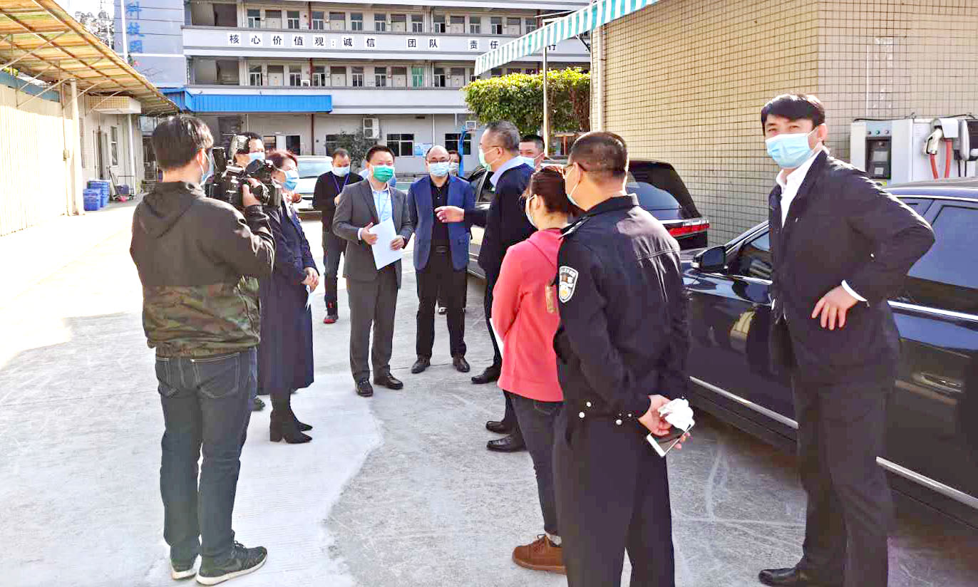 2月18日下午:凤岗镇经信局一行莅临林积为,了解防疫工作并给出指导意见;