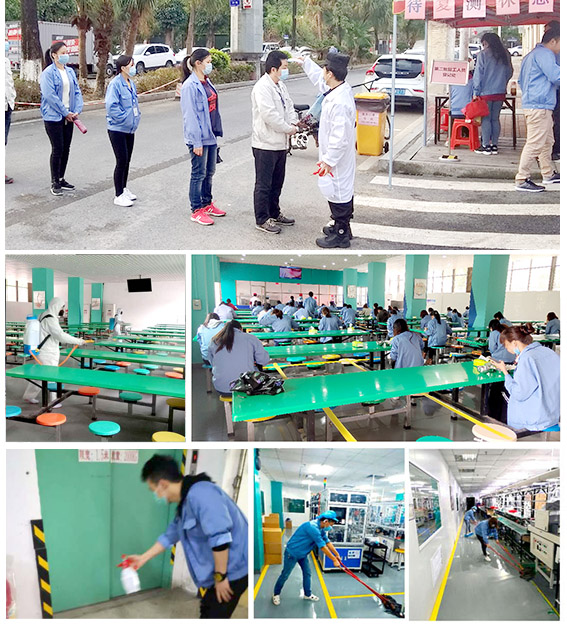 2月9日上午:经过凤岗镇商务局、工信局、人社局、卫健委各部门的现场防疫检查与指导,林积为有序安排第一批人员复工;