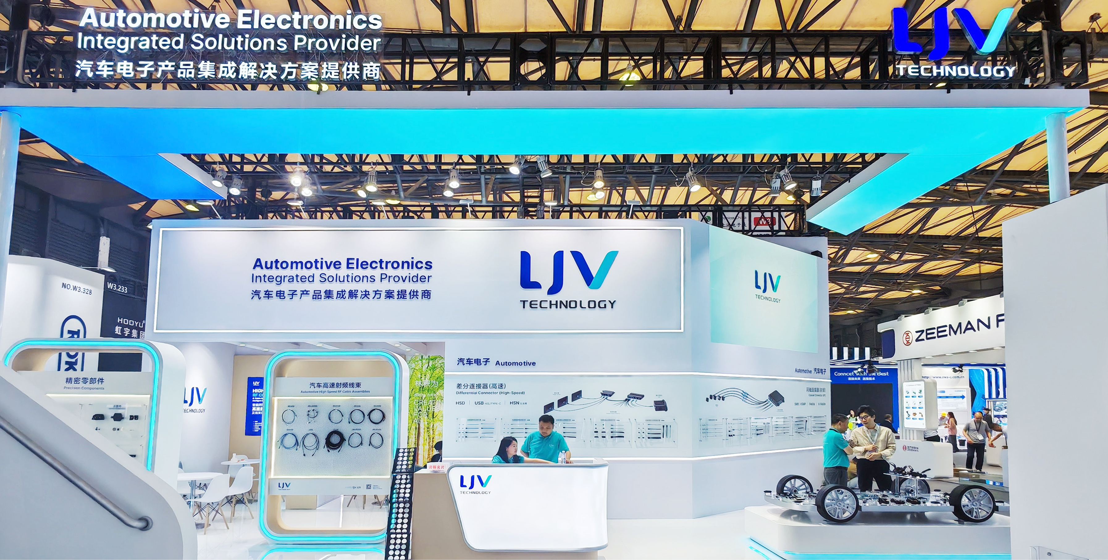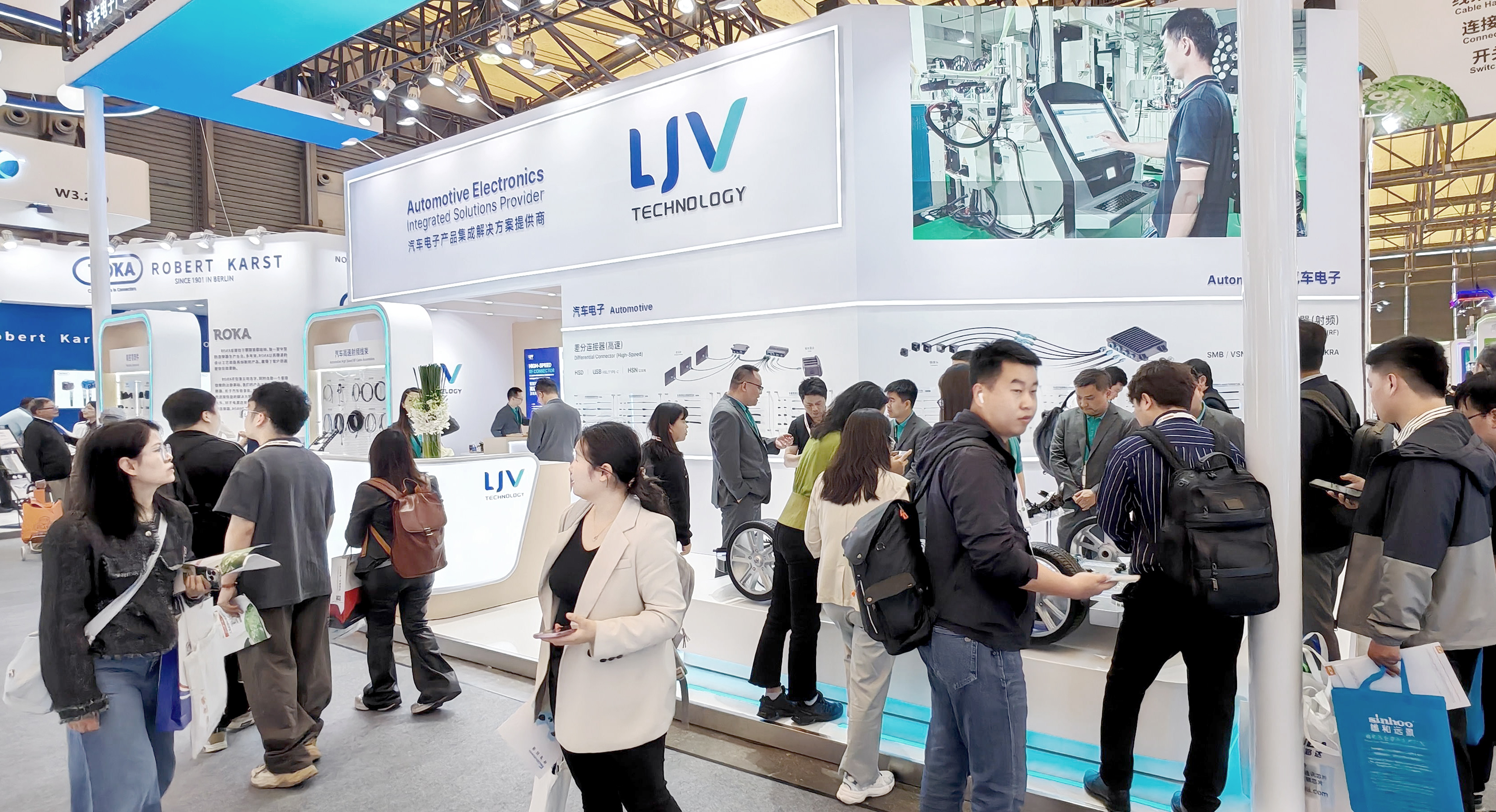 2025慕尼黑上海电子展于4月17日在上海新国际博览中心圆满落幕。 作为汽车电子产品集成解决方案提供商,LJV携全系智能网联汽车高速射频连接器和线束组件、汽车控制开关模组、汽车精密零部件创新产品与解决方案闪耀亮相W3馆521号展位。