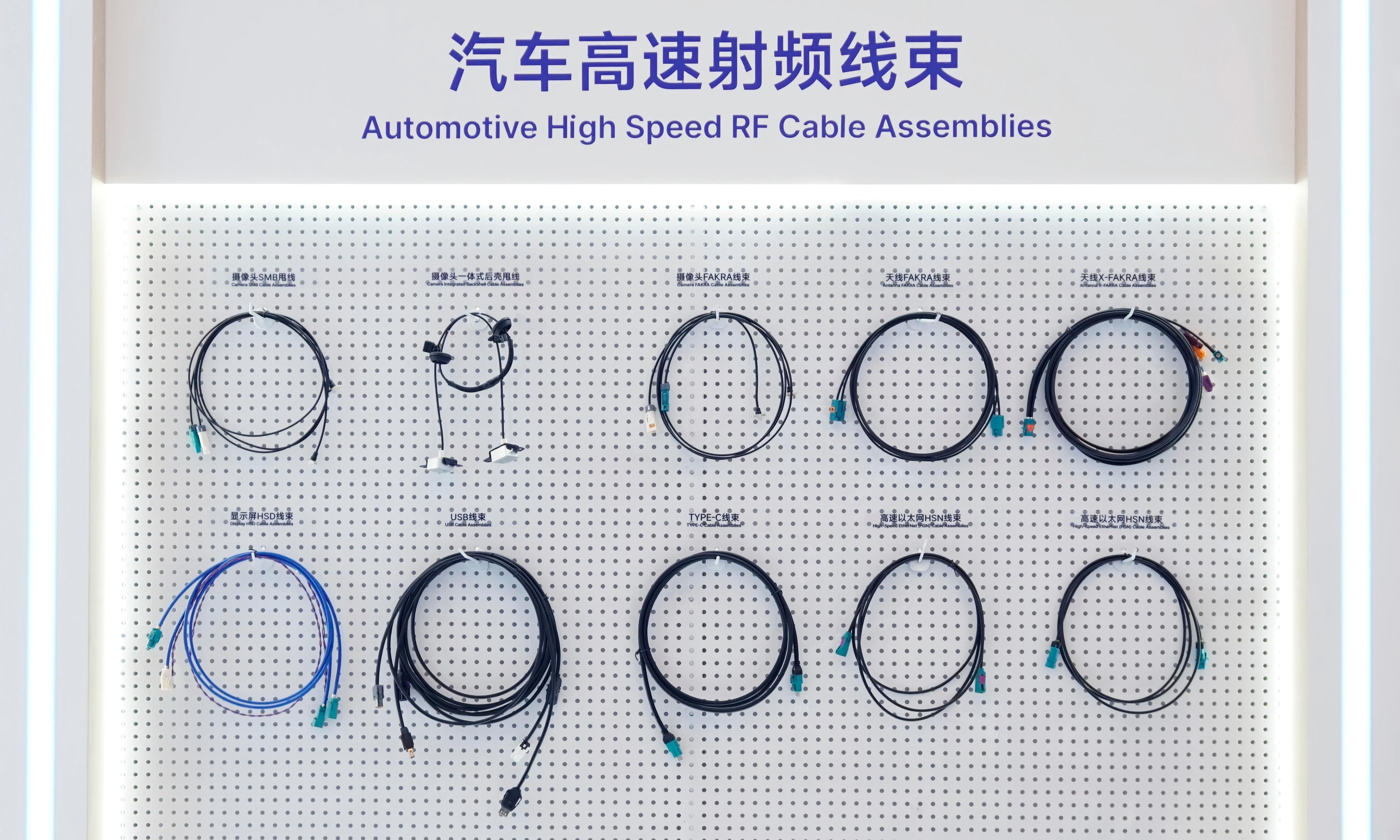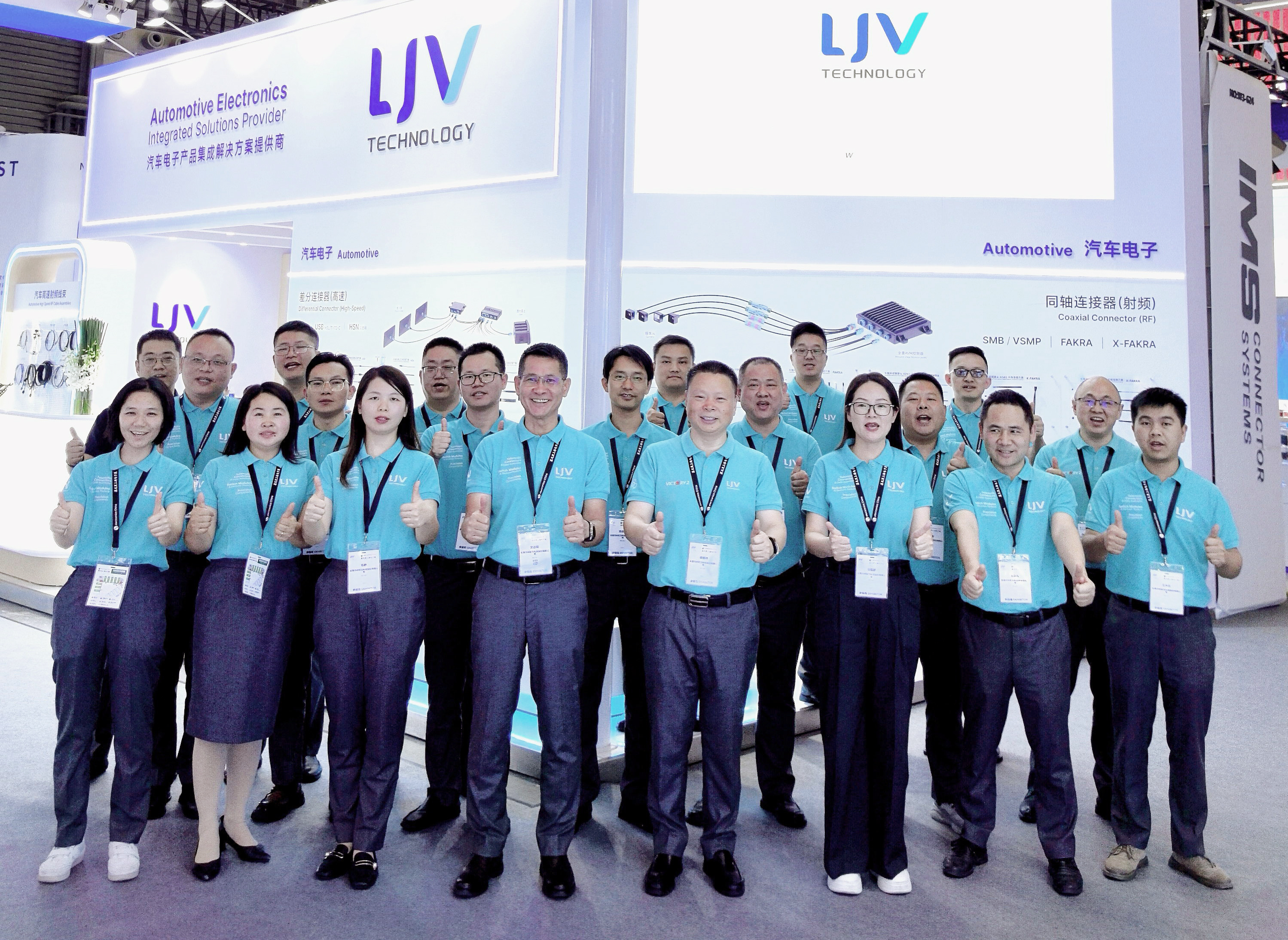 展品涵盖FAKRA、X-FAKRA(MINI-FAKRA)、Floating VSMP、HSD、USB(HSL/TYPE-C)、HSN(High Speed EtherNet)、线束组件等产品线,这不仅展现了LJV在车载连接器行业赛道的开拓精神,也展现了LJV在赋能汽车电子产业链的坚定决心。