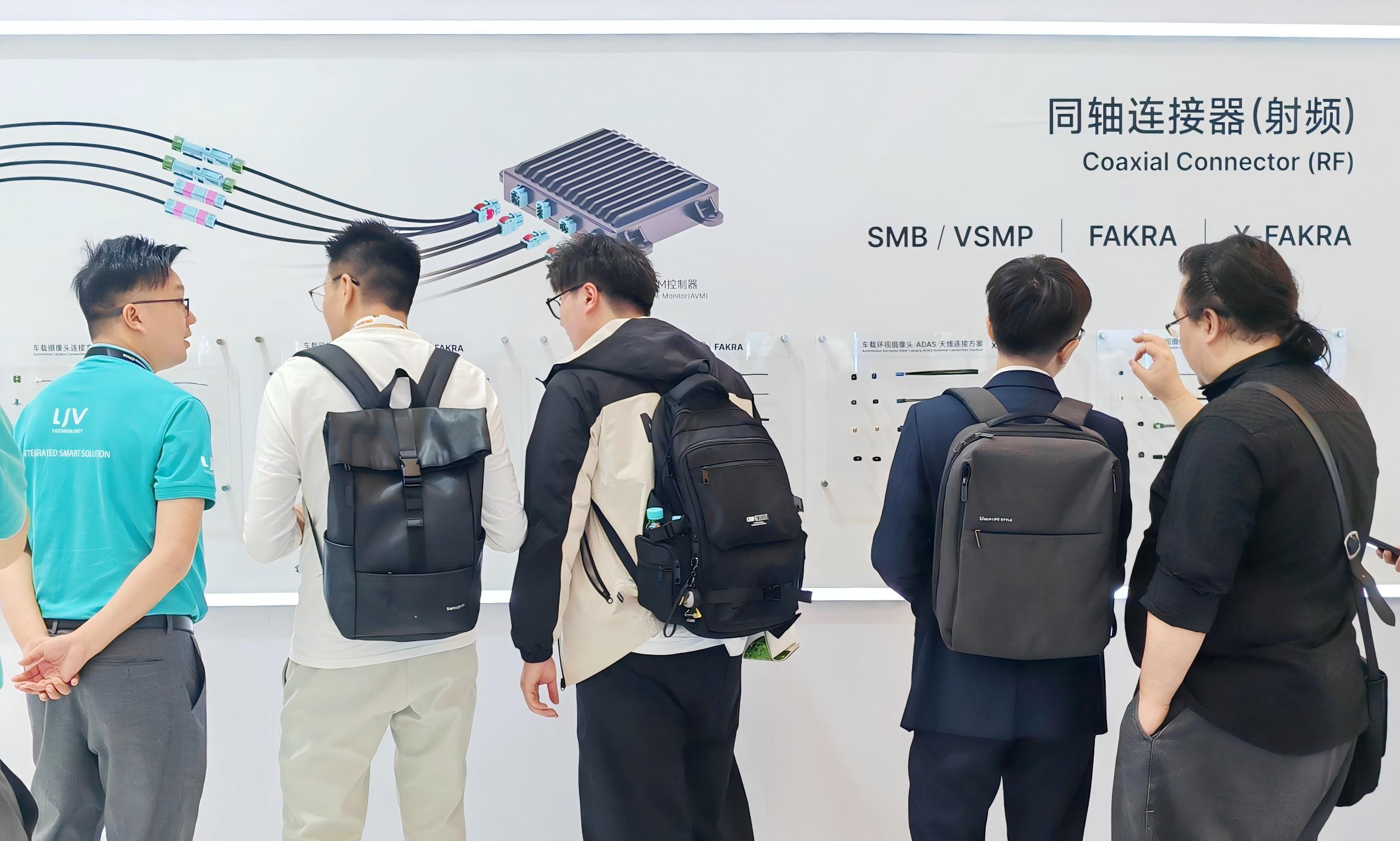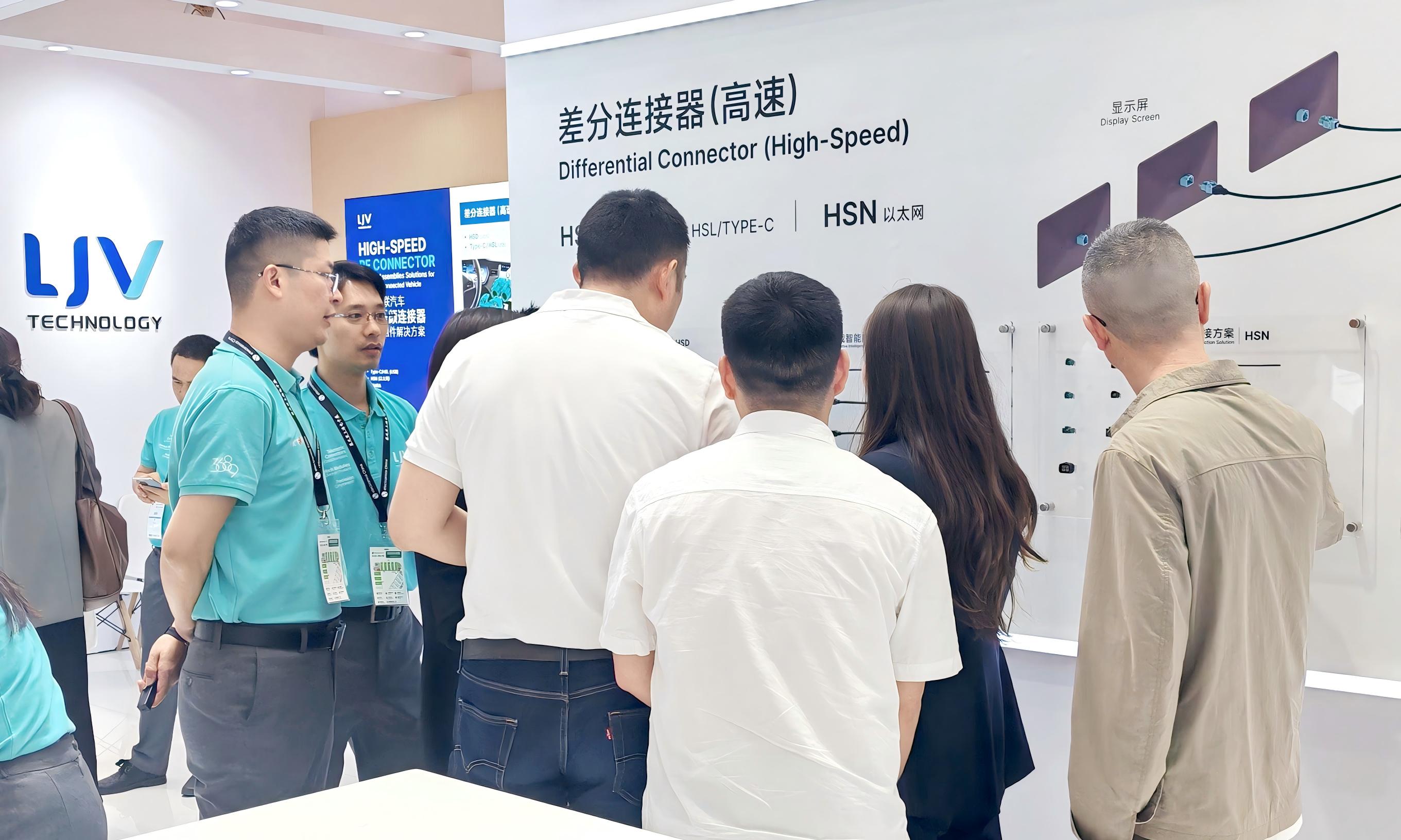 在为期三天的展会中,LJV围绕汽车电子应用领域,全面展示一系列创新连接方案,包括车载摄像头连接方案、车载环视摄像头/ADAS/天线连接方案、车载智能座舱连接方案以及汽车高速以太网连接方案等,精彩呈现智能网联汽车连接方案的创新应用及其卓越性能。