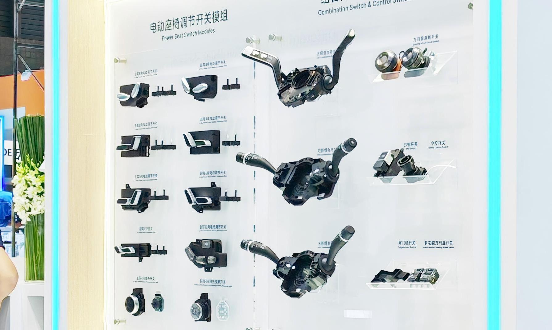 此次展出的汽车控制开关系列,涵盖座椅调节开关模组和组合开关,旨在满足不同场景下的操作需求,为智能座舱的舒适与便捷体验提供支持。 座椅调节开关模组是智能座舱舒适体验的核心组件。它能够实现座椅的前后滑动、上下升降、靠背角度调节以及腰部支撑等多种功能,为驾乘者提供个性化的舒适体验。通过模块化设计,安装和维护变得轻松便捷。 组合开关集成了灯光控制、雨刮控制、转向灯控制等多种功能,通过优化设计,实现了操作的便捷性和智能化控制。其紧凑型设计和高可靠性使其成为汽车驾驶舱的理想选择。支持高度个性化的定制服务,根据不同车型和用户需求进行灵活配置。 |