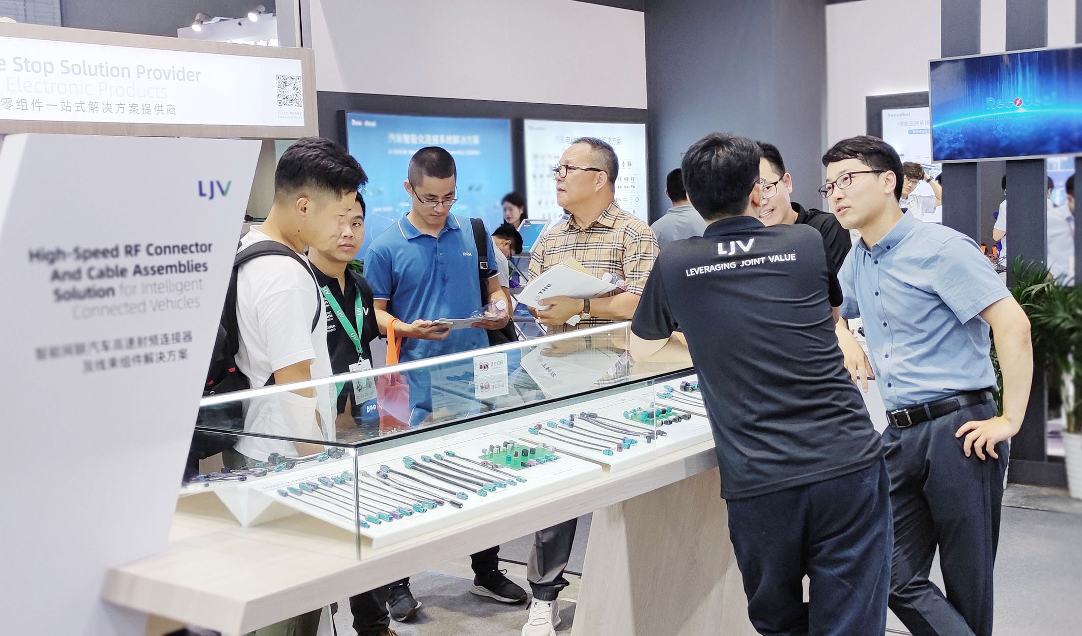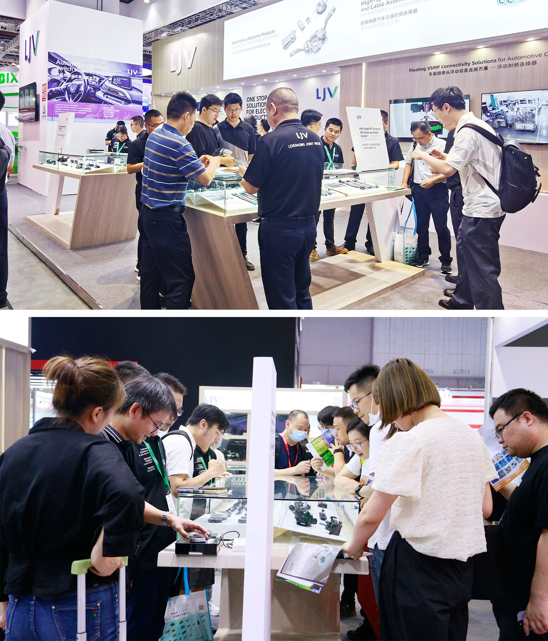 作为电子零组件一站式解决方案提供商,LJV携汽车高速射频连接器及线 束组件、汽车控制开关模组、汽车电子元器件等众多新品、解决方案亮相本次展会。